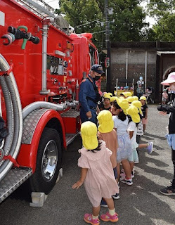 消防士の方々が来園くださり避難訓練の様子を見ていただきました。🚒